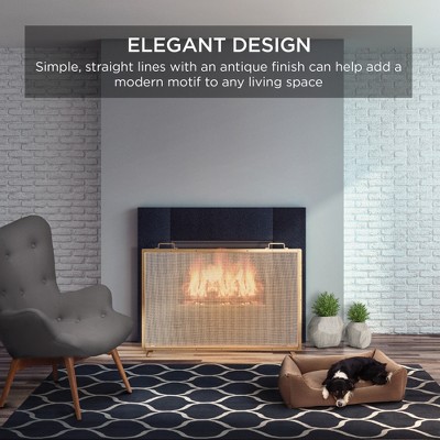 Noble House Houston Modern Single Panel Iron Firescreen Gold Finish Walmart Com